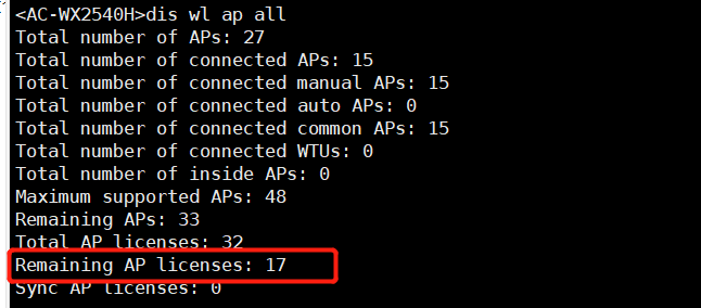 Remaining AP licenses: 17 还可用剩余授权的数量