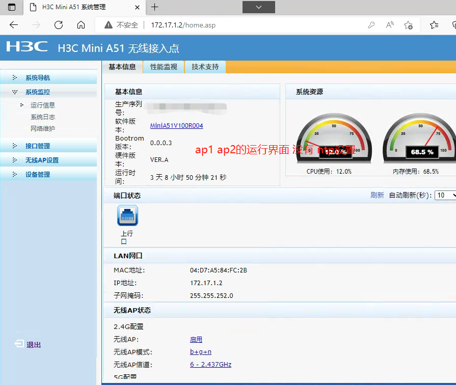 2、公司里面ER8300带几个mini型ap,发现有两个ap上面的设备时常断联,后面分析发现,ap1和ap2显示型号是minia51,而ap3是a51。ap1和2里面的时钟是1970年,而且无法更改无法设置。而ap3可以正常显示获取时间,三个ap外形一样,包装盒也是一样的,搞笑了。。。。,稍后补充ap1和ap3的截图
