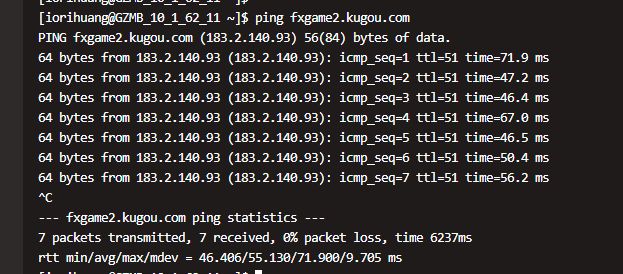 用户说在ping的时候往返时间过高(下面有图),我看了一下是正常值