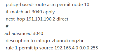 这部分的意识是说,192.168.4.0的网段走下一跳为191.191.190.2这条链路出去,只是一条pbr
