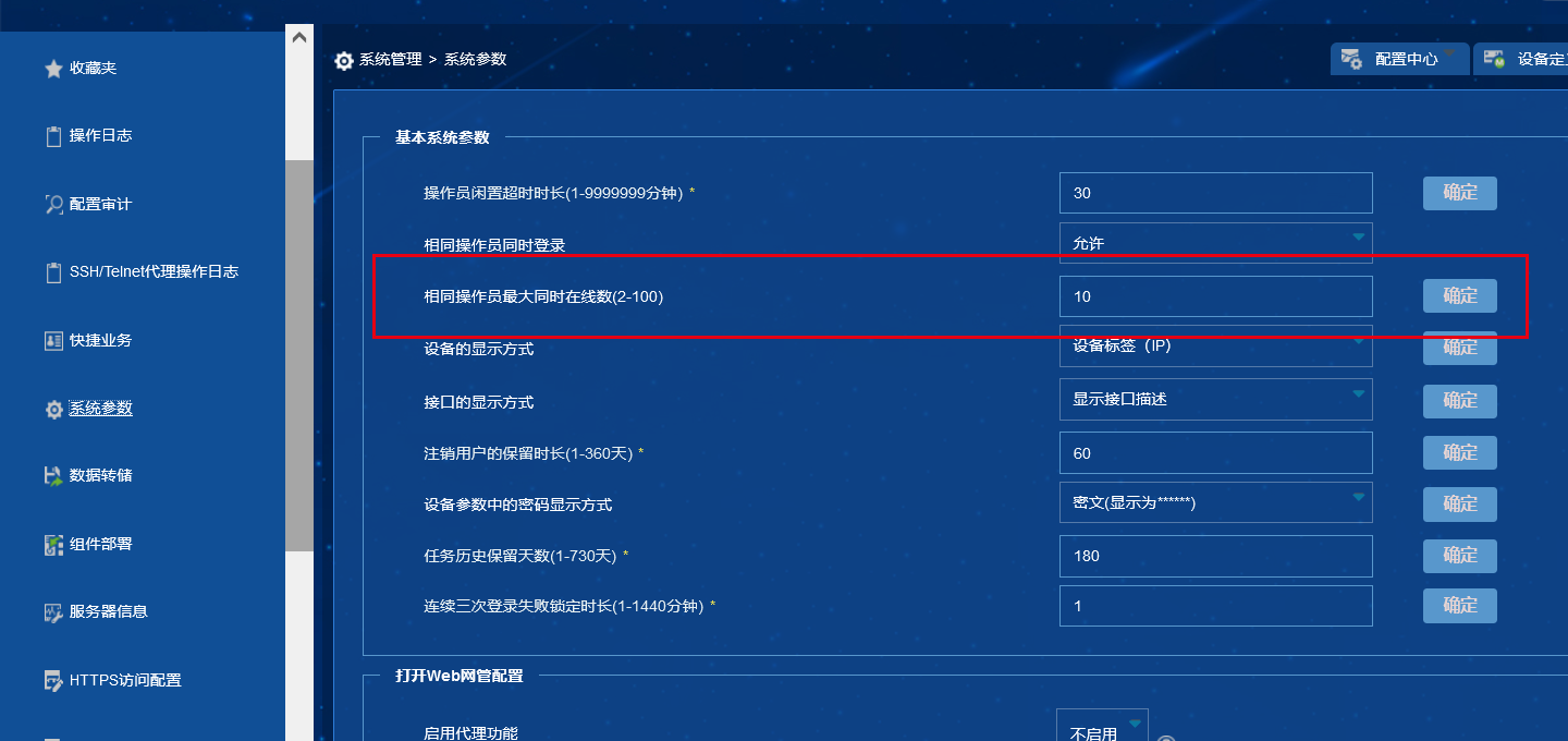 接入用户下面和接入服务下面都有在线数量限制配置,二者相比哪个值小哪个生效。