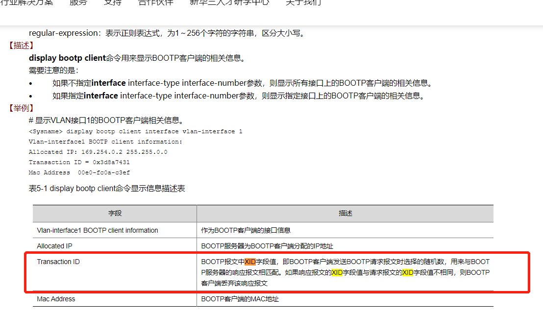 华三也会对BOOTP报文中XID字段值,即BOOTP客户端发送BOOTP请求报文时选择的随机数,用来与BOOTP服务器的响应报文相匹配。如果响应报文的XID字段值与请求报文的XID字段值不相同,则BOOTP客户端丢弃该响应报文。