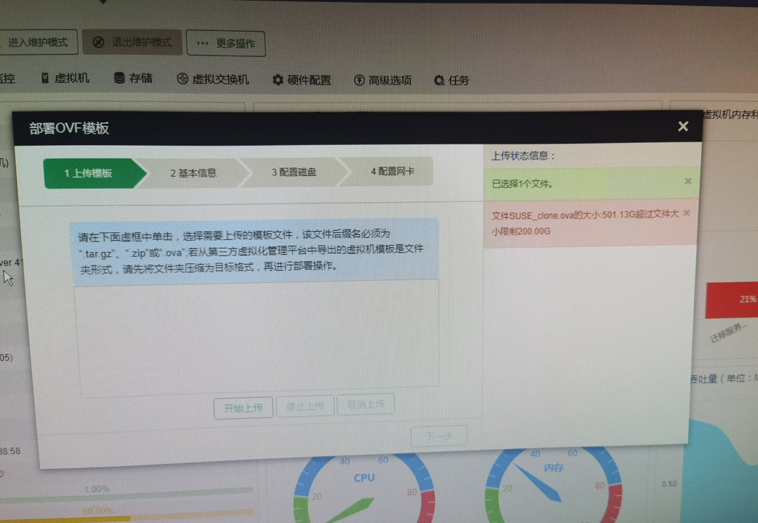 UIS 上传OVF模板时,提示超过文件大小限制200G,这个限制能通过后台解除掉吗,或者改大一点;