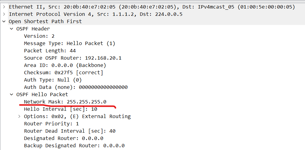 Network Masks发送Hello报文的接口所在网络的掩码(应该是物理接口的掩码)