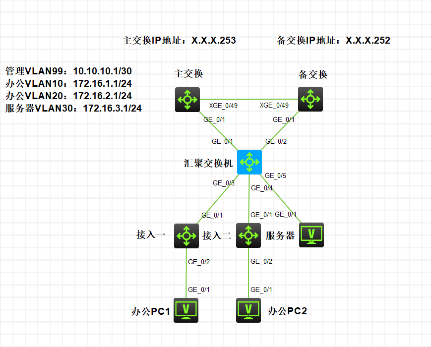 主备核心之间的XGE0/49口是怎么配置的?应该trunk并放行所有vlan