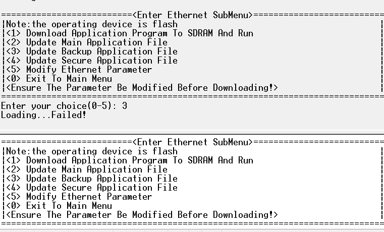 #回到以太网菜单后,选择<2> 升级主应用程序,等待版本下载完成