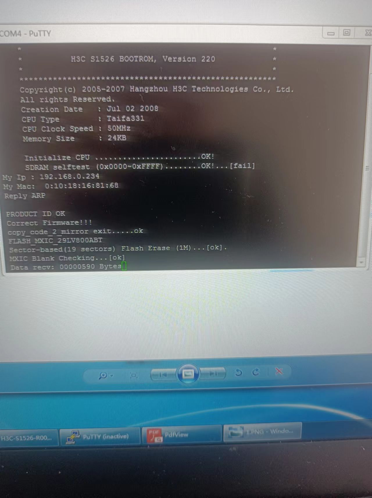 一款十几年前的交换机,原有版本为R0010。通过官网下载的R0011版本,按照升级指导进行操作,选择二进制文件后,重启后设备升级失败,通过console连接,提示如下