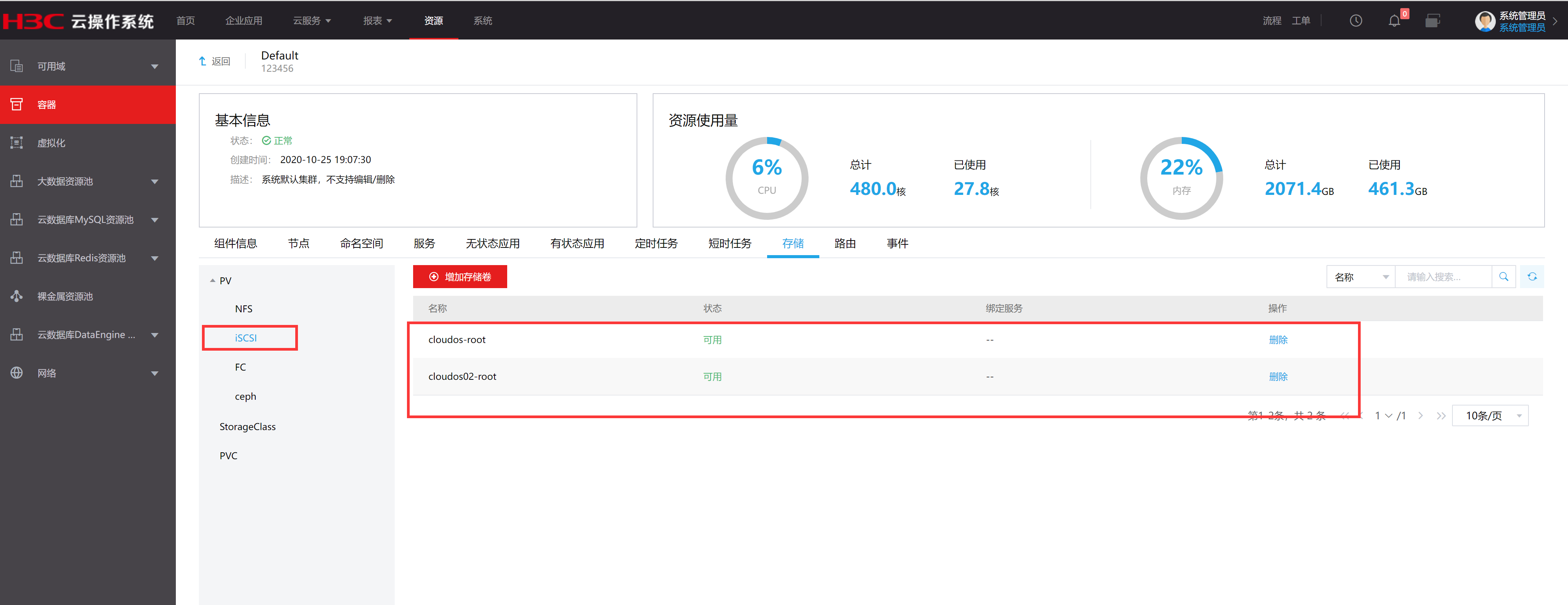 CloudOS根目录剩余空间不足,挂载iSCSI存储用来扩容根目录,CloudOS是三节点模式部署的,在这个界面挂载了,后台去看就只有一个节点是挂载了磁盘的,现在希望三个节点都能够挂载磁盘,需要怎么操作,是要切换主节点分别挂载还是怎么操作,现在CloudOS5.0好像是没有主节点这种说法了