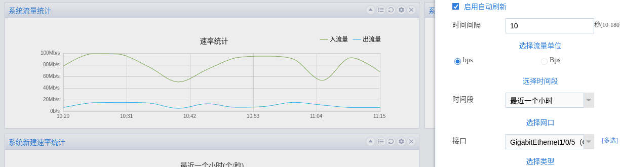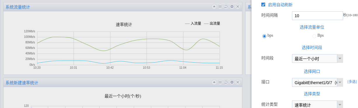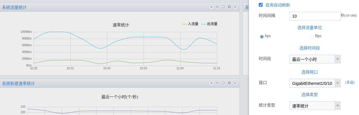 1、看上去像是显示的2个接口的总流量(入流量和内部接口GE1/0/10的出流量一致),但几次测试的走GE1/0/6都应该是超过了100M的。