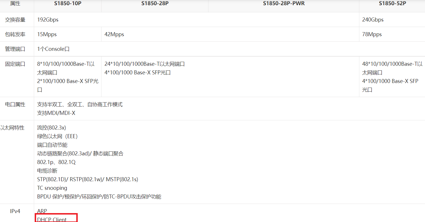 S1850好像不支持dhcp sever特性,只支持做为dhcp客户端。官网参数和配置指导都没看到相关记录。建议你先向供货商确认一下。