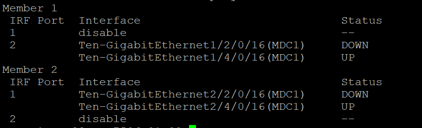 两台S7506E堆叠配置如下图,其中一条链路怀疑是光模块故障导致链路DOWN。现在准备恢复这条链路,想请教下大家在现有配置的情况下直接跳线是否会造成堆叠分裂或其他情况。
