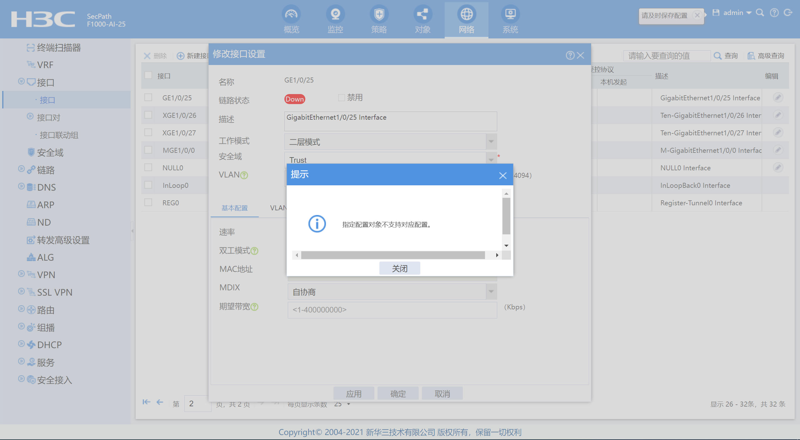 确认trurst安全域是否与接口类型一致,都是二层或者三层