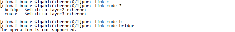 如果将工作模式设置为二层模式(bridge),则作为一个二层以太网接口使用,如果将工作模式设置为三层模式(route),则作为一个三层以太网接口使用。