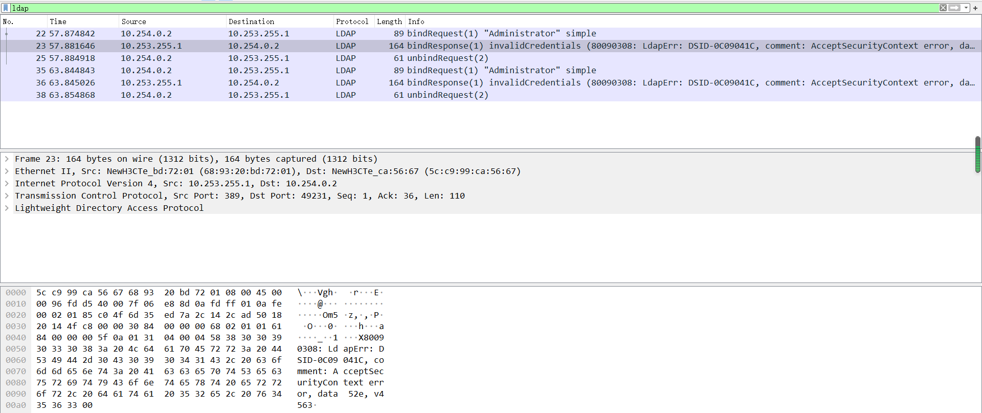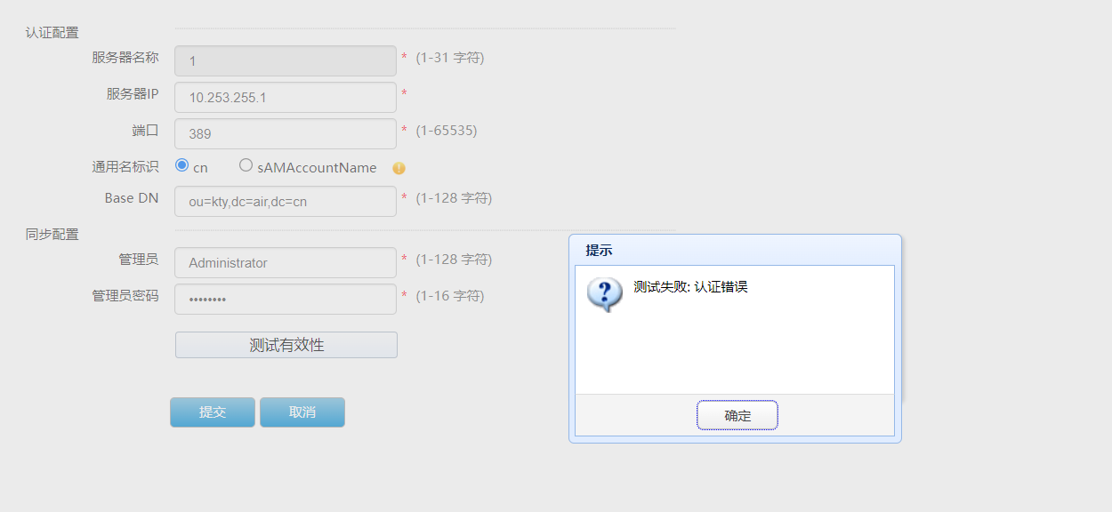 LDAP服务器和acg联动做,有效性测试不通过,上述为测试时的报文交互情况,