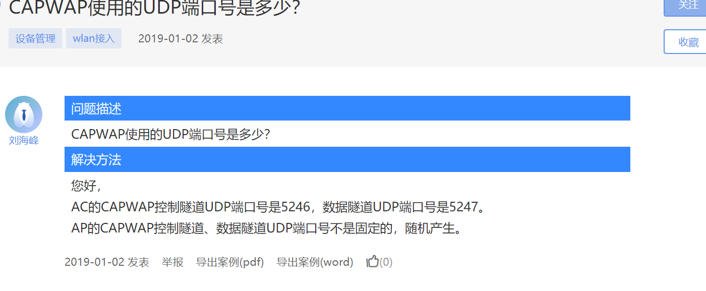 AC的CAPWAP控制隧道UDP端口号是5246,数据隧道UDP端口号是5247。
