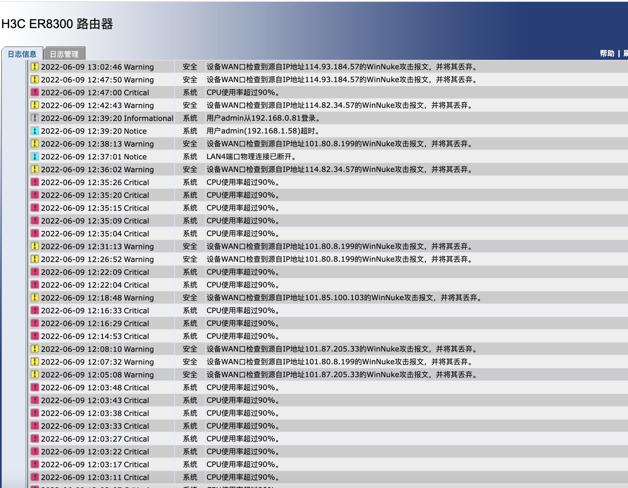 1、路由器时不时使用率超过90%
