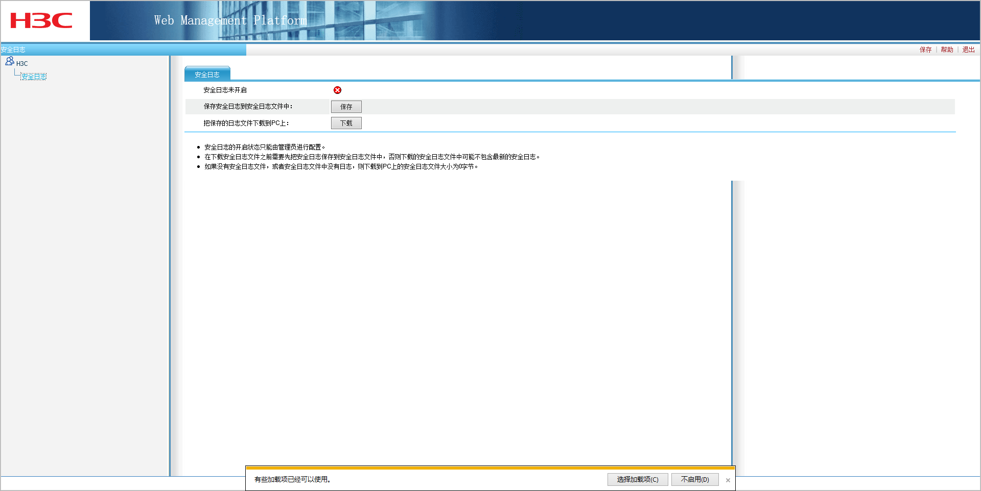 MSR 2600-10 Web 管理页面进去之后只有安全日志一个选项 没有其他配置选项,如下图。使用的帐号是admin,level 3,要怎么搞出其他的配置选项
