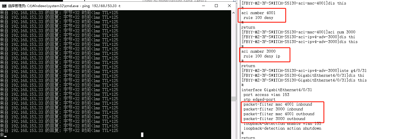 192.168.153.33是从接入交换机的4/0/31口进来的,我从我这台管理机上ping这个地址能通,但是4/0/31下不论是做mac的全限制,还是ip的全限制,这个192.168.153.33都能通。