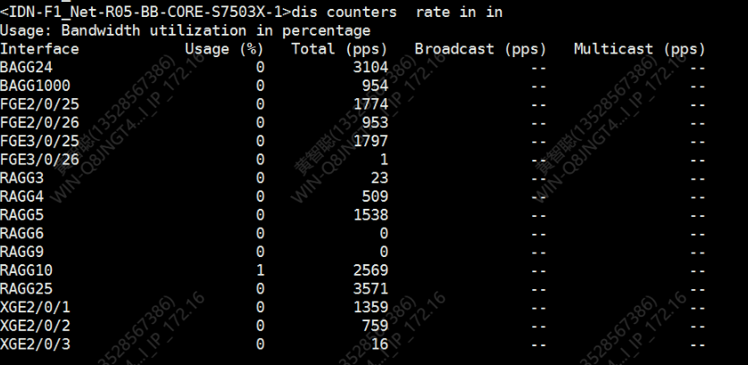 您好,可以使用dis int gi 类似的命令查看最新300秒的流量情况。