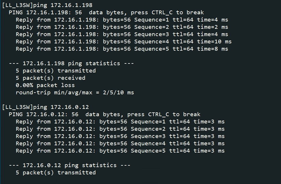 在IE4300-12P交换机中配置了两个vlan,vlan-interface,地址分别为172.16.0.254/24和172.16.1.254;