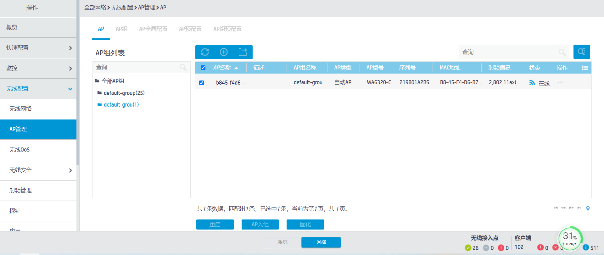 后面有三个。。。,点击就可以删除。自动上线的 AP默认会到第一个组的