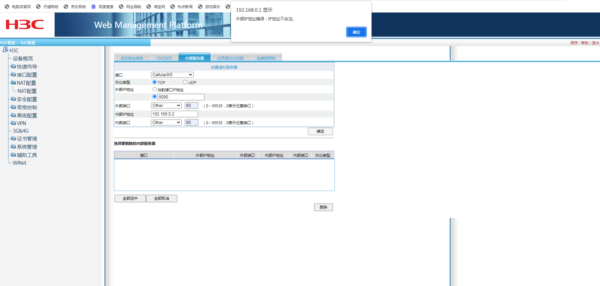 提示我外网IP不合法