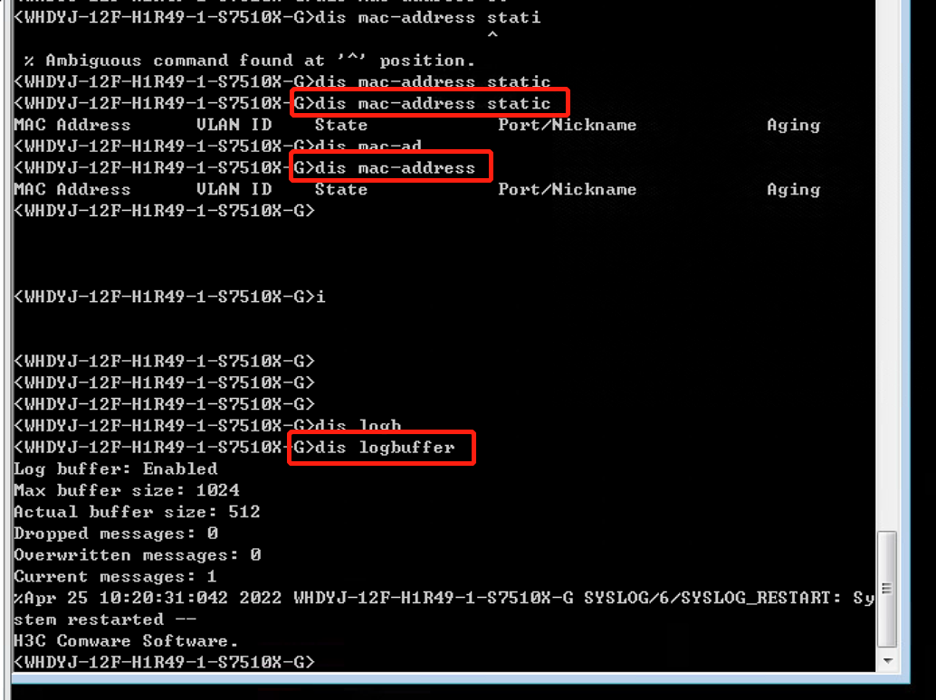 S7510X-g 查看mac地址表空的 但是单独查看某一台的终端mac地址可以过滤出来,dis mac-address 空的,dis logb也没有日志。。。内网有两台服务器可以看到arp但是查找不到mac地址。ping不通。 这种情况有可能是IP冲突吗?终端换其他地址就没问题,同一个vlan的其他终端也没问题。