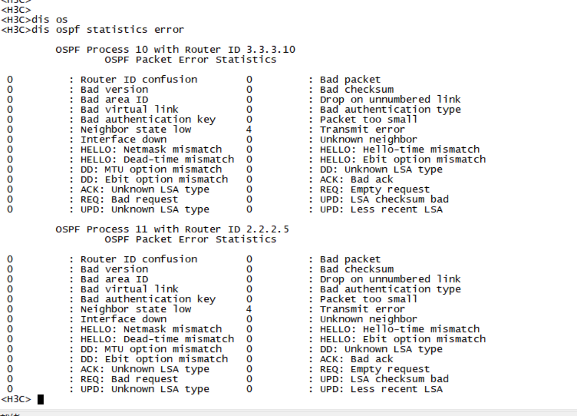 互联地址可以相互ping 通,通过查看邻居建立错误显示如上表