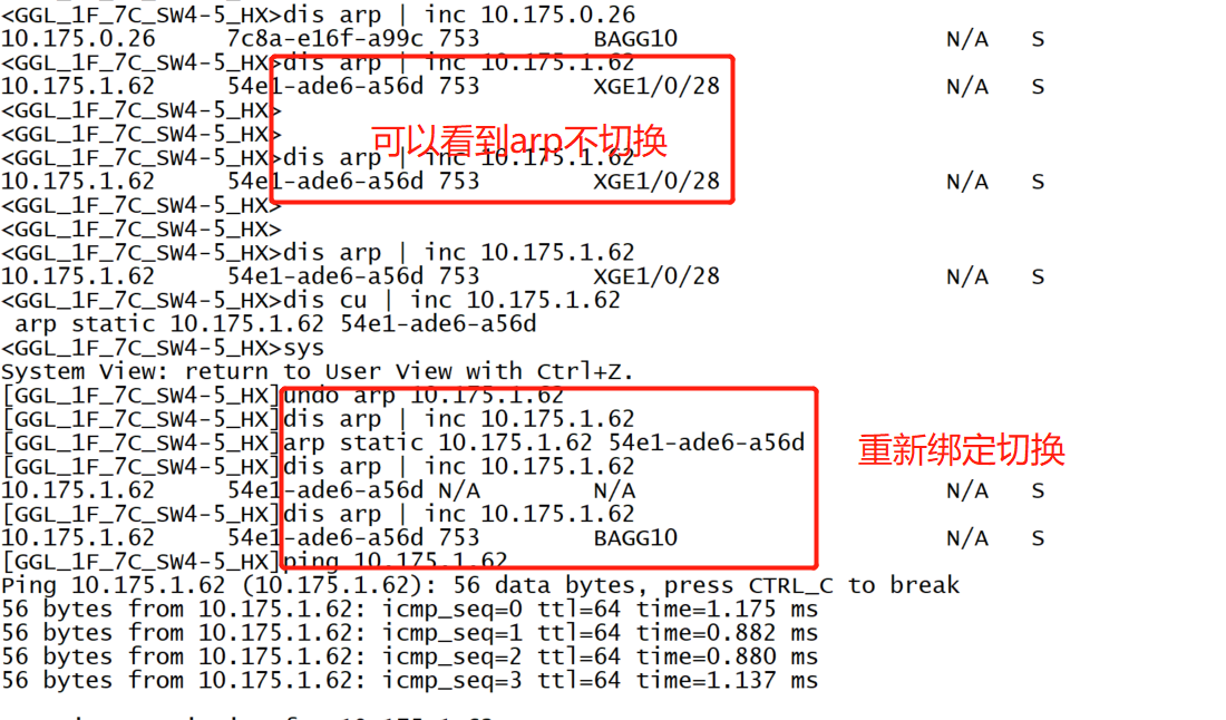 arp绑定接口了,静态还没老化,需要重置一下arp表项