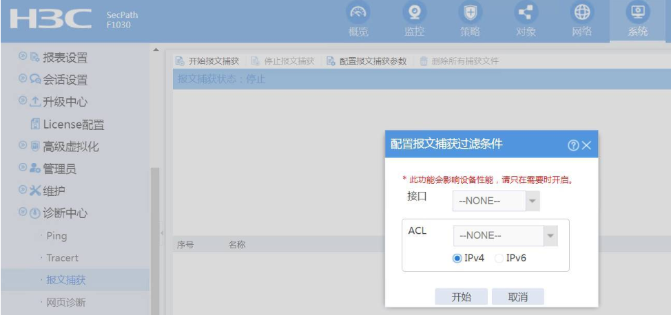 web界面抓包使用ACL 3XXX限制,不指定接口,参数请设置最大。
