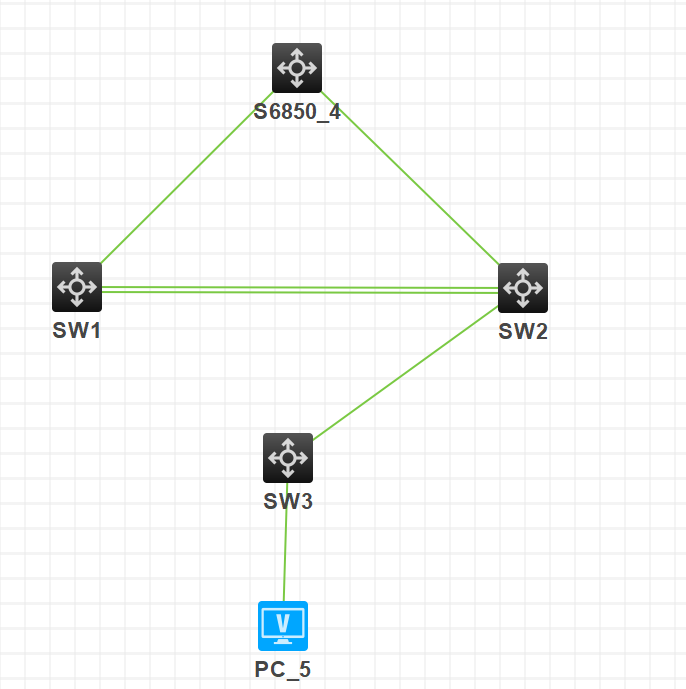 SW1和SW2配置drni,上联SW3,实地址为100.1.1.4和100.1.1.3,虚地址为100.1.1.2,SW3地址为100.1.1.1;SW4单线接入SW2,SW4二层部署放通业务vlan100,SW2为业务网关vlan100 192.168.100.254