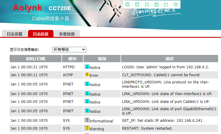 这个建议找厂商问问了,没见过,交换机?下面的日志看起来就是设备重启之后正常的日志提示