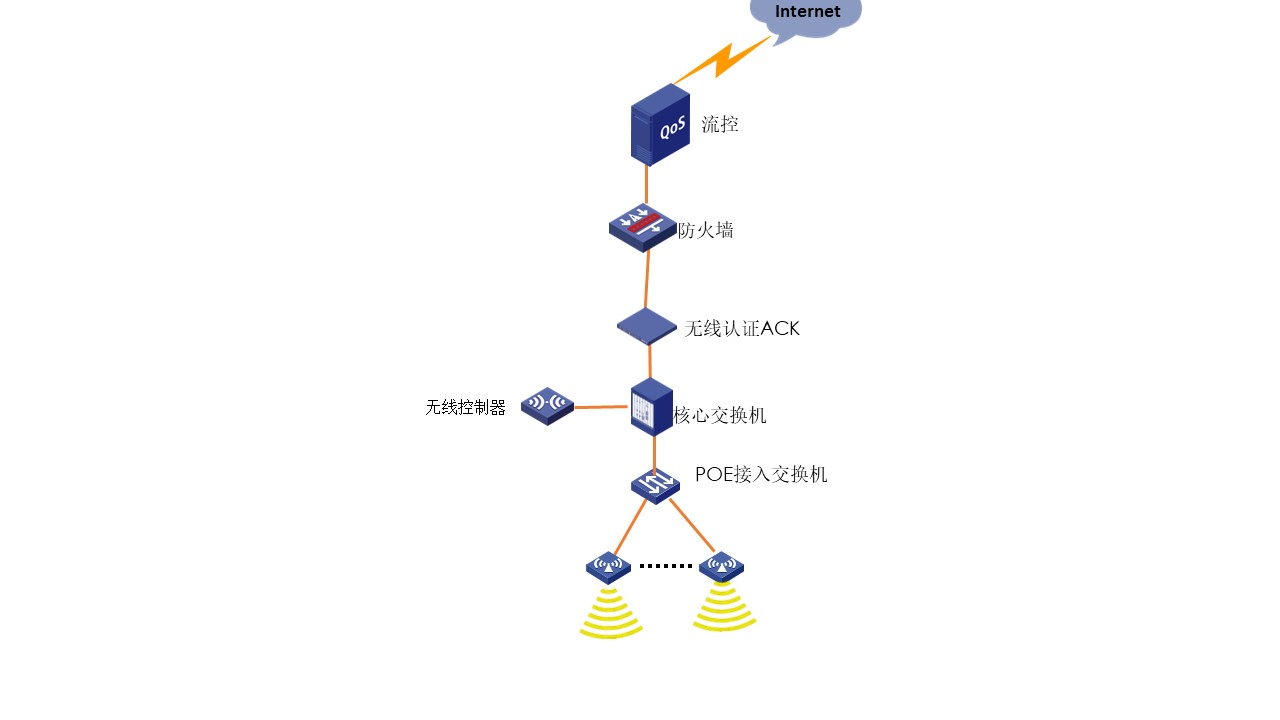 aruba 的AC旁挂核心,ACK准入串行。无线信号开放,由ACK设备去做Portal认证。