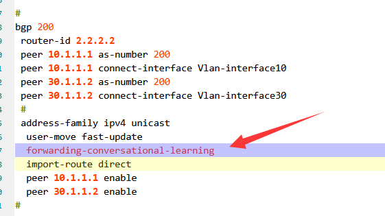 [[Sysname-bgp-default-ipv4] forwarding-conversational-learning route-policy policy1