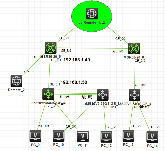 [S2]display cur # version 7.1.075, Alpha 7571 # sysname S2 # irf mac-address persistent timer irf auto-update enable undo irf link-delay irf member 1 priority 1 # lldp global enable # system-working-mode standard xbar load-single password-recovery enable lpu-type f-series # vlan 1 # vlan 20 # vlan 30 # stp global enable # dhcp server ip-pool 1 gateway-list 192.168.20.1 network 192.168.20.0 mask 255.255.255.0 dns-list 144.114.114.114 # dhcp server ip-pool 2 gateway-list 192.168.30.1 network 192.168.30.0 mask 255.255.255.0 dns-list 144.114.114.114 # interface Bridge-Aggregation1 # interface NULL0 # interface Vlan-interface20 ip address 192.168.20.1 255.255.255.0 # interface Vlan-interface30 ip address 192.168.30.1 255.255.255.0 # interface FortyGigE1/0/53 port link-mode bridge # interface FortyGigE1/0/54 port link-mode bridge # interface GigabitEthernet1/0/1 port link-mode route combo enable fiber ip address 192.168.1.50 255.255.255.252 # interface GigabitEthernet1/0/2 port link-mode route combo enable fiber ip address 192.168.1.13 255.255.255.252 # interface GigabitEthernet1/0/3 port link-mode bridge combo enable fiber port link-aggregation group 1 # interface GigabitEthernet1/0/4 port link-mode bridge combo enable fiber port link-aggregation group 1 # interface GigabitEthernet1/0/5 port link-mode bridge combo enable fiber # interface GigabitEthernet1/0/6 port link-mode bridge combo enable fiber # interface GigabitEthernet1/0/7 port link-mode bridge combo enable fiber # interface GigabitEthernet1/0/8 port link-mode bridge combo enable fiber # interface GigabitEthernet1/0/9 port link-mode bridge combo enable fiber # interface GigabitEthernet1/0/10 port link-mode bridge port access vlan 20 combo enable fiber # interface GigabitEthernet1/0/11 port link-mode bridge port access vlan 30 combo enable fiber # interface GigabitEthernet1/0/12 port link-mode bridge combo enable fiber # interface GigabitEthernet1/0/13 port link-mode bridge combo enable fiber # interface GigabitEthernet1/0/14 port link-mode bridge combo enable fiber # interface GigabitEthernet1/0/15 port link-mode bridge combo enable fiber # interface GigabitEthernet1/0/16 port link-mode bridge combo enable fiber # interface GigabitEthernet1/0/17 port link-mode bridge combo enable fiber # interface GigabitEthernet1/0/18 port link-mode bridge combo enable fiber # interface GigabitEthernet1/0/19 port link-mode bridge combo enable fiber # interface GigabitEthernet1/0/20 port link-mode bridge combo enable fiber # interface GigabitEthernet1/0/21 port link-mode bridge combo enable fiber # interface GigabitEthernet1/0/22 port link-mode bridge combo enable fiber # interface GigabitEthernet1/0/23 port link-mode bridge combo enable fiber # interface GigabitEthernet1/0/24 port link-mode bridge combo enable fiber # interface GigabitEthernet1/0/25 port link-mode bridge combo enable fiber # interface GigabitEthernet1/0/26 port link-mode bridge combo enable fiber # interface GigabitEthernet1/0/27 port link-mode bridge combo enable fiber # interface GigabitEthernet1/0/28 port link-mode bridge combo enable fiber # interface GigabitEthernet1/0/29 port link-mode bridge combo enable fiber # interface GigabitEthernet1/0/30 port link-mode bridge combo enable fiber # interface GigabitEthernet1/0/31 port link-mode bridge combo enable fiber # interface GigabitEthernet1/0/32 port link-mode bridge combo enable fiber # interface GigabitEthernet1/0/33 port link-mode bridge combo enable fiber # interface GigabitEthernet1/0/34 port link-mode bridge combo enable fiber # interface GigabitEthernet1/0/35 port link-mode bridge combo enable fiber # interface GigabitEthernet1/0/36 port link-mode bridge combo enable fiber # interface GigabitEthernet1/0/37 port link-mode bridge combo enable fiber # interface GigabitEthernet1/0/38 port link-mode bridge combo enable fiber # interface GigabitEthernet1/0/39 port link-mode bridge combo enable fiber # interface GigabitEthernet1/0/40 port link-mode bridge combo enable fiber # interface GigabitEthernet1/0/41 port link-mode bridge combo enable fiber # interface GigabitEthernet1/0/42 port link-mode bridge combo enable fiber # interface GigabitEthernet1/0/43 port link-mode bridge combo enable fiber # interface GigabitEthernet1/0/44 port link-mode bridge combo enable fiber # interface GigabitEthernet1/0/45 port link-mode bridge combo enable fiber # interface GigabitEthernet1/0/46 port link-mode bridge combo enable fiber # interface GigabitEthernet1/0/47 port link-mode bridge combo enable fiber # interface GigabitEthernet1/0/48 port link-mode bridge combo enable fiber # interface M-GigabitEthernet0/0/0 # interface Ten-GigabitEthernet1/0/49 port link-mode bridge combo enable fiber # interface Ten-GigabitEthernet1/0/50 port link-mode bridge combo enable fiber # interface Ten-GigabitEthernet1/0/51 port link-mode bridge combo enable fiber # interface Ten-GigabitEthernet1/0/52 port link-mode bridge combo enable fiber # scheduler logfile size 16 # line class aux user-role network-operator # line class console user-role network-admin # line class tty user-role network-operator # line class vty user-role network-operator # line aux 0 user-role network-operator # line con 0 user-role network-admin # line vty 0 63 user-role network-operator # ip route-static 0.0.0.0 0 192.168.1.49 ip route-static 0.0.0.0 0 192.168.1.14 # radius scheme system user-name-format without-domain # domain name system # domain default enable system # role name level-0 description Predefined level-0 role # role name level-1 description Predefined level-1 role # role name level-2 description Predefined level-2 role # role name level-3 description Predefined level-3 role # role name level-4 description Predefined level-4 role # role name level-5 description Predefined level-5 role # role name level-6 description Predefined level-6 role # role name level-7 description Predefined level-7 role # role name level-8 description Predefined level-8 role # role name level-9 descript