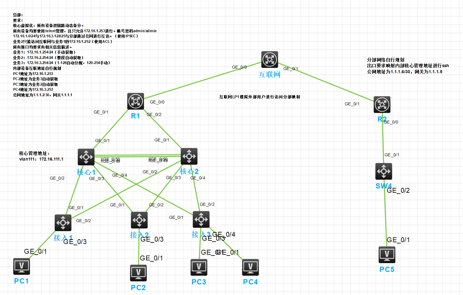 irf,聚合,telnet限制管理IP,snat,dnat ,acl。就这些配置吧