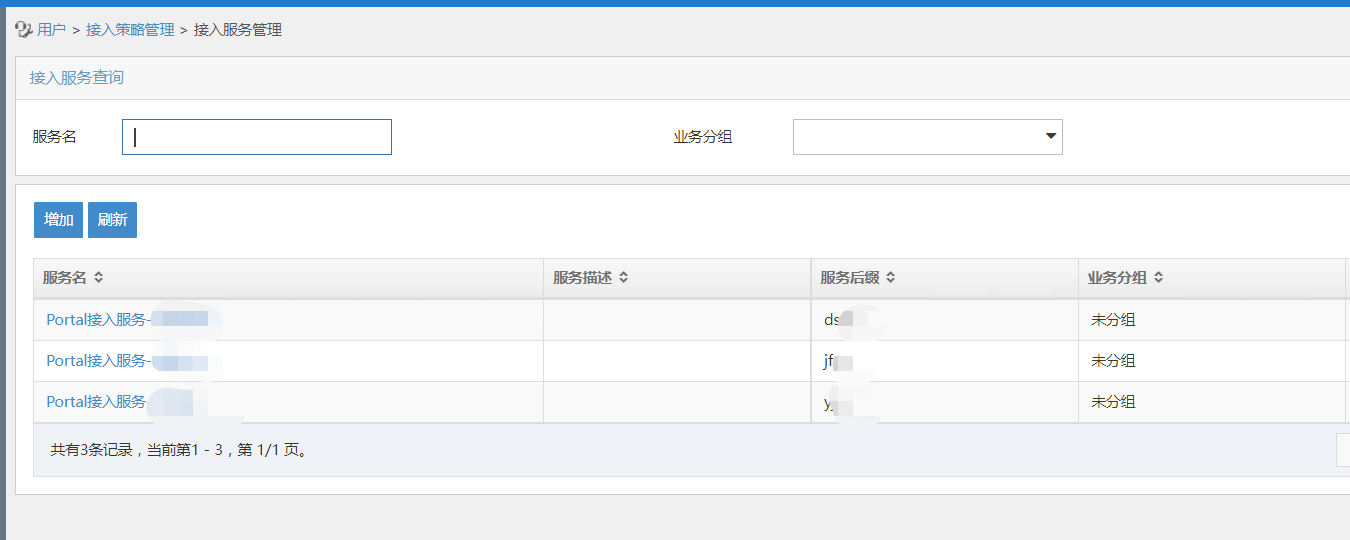 每一个服务后缀对应一个服务类型,同时要对应着AC上面的一个domain,但一个ssid只能增加一个domain。所以连接一个ssid时,只有一个服务类型是正确的,选择可以认证成功。不同的ssid对应着不同的服务类型。