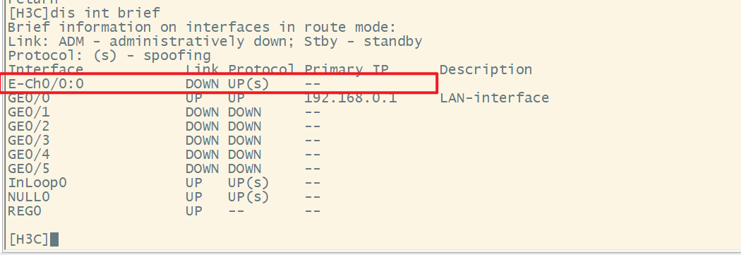 看到日志是E-Ch0/0:0 然后换了成1/0:0 现在protocol也down了
