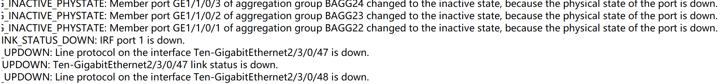 为什么主设备重启,会有下面的日志:Member port GE1/1/0/47 of aggregation group BAGG50 changed to the inactive state, because the physical state of the port is down.
