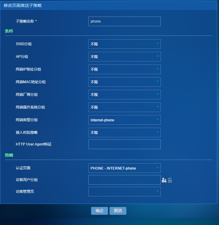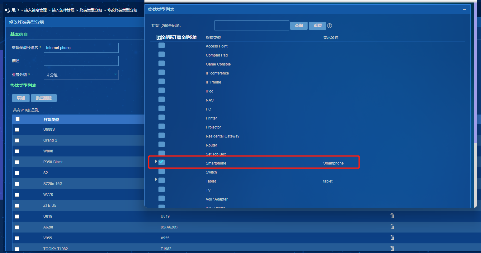 2、设置终端页面推送策略,选择smartphone,推送phone认证页面