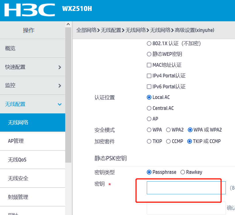 单击页面底部的<网络>按钮,进入“网络”菜单页面,然后单击页面左侧导航栏的“ 无线配置 > 无线网络”,进入“无线网络”页面,配置步骤为:
