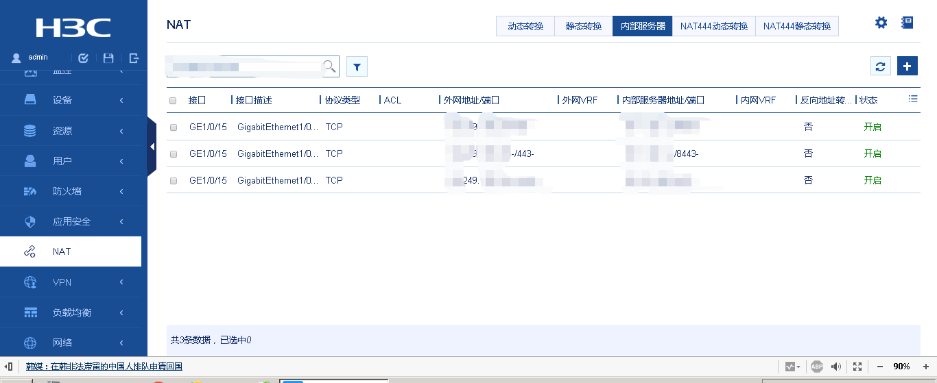 目的:通过内部服务器映射,添加规则----将【公网IP-A】的443端口映射至内部服务器的私网地址【私网IP-A】的8443端口。