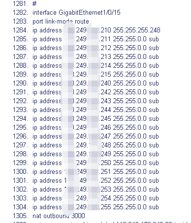 现状:F1020防火墙接入企业专线,接入的接口添加了所有的公网IP地址。