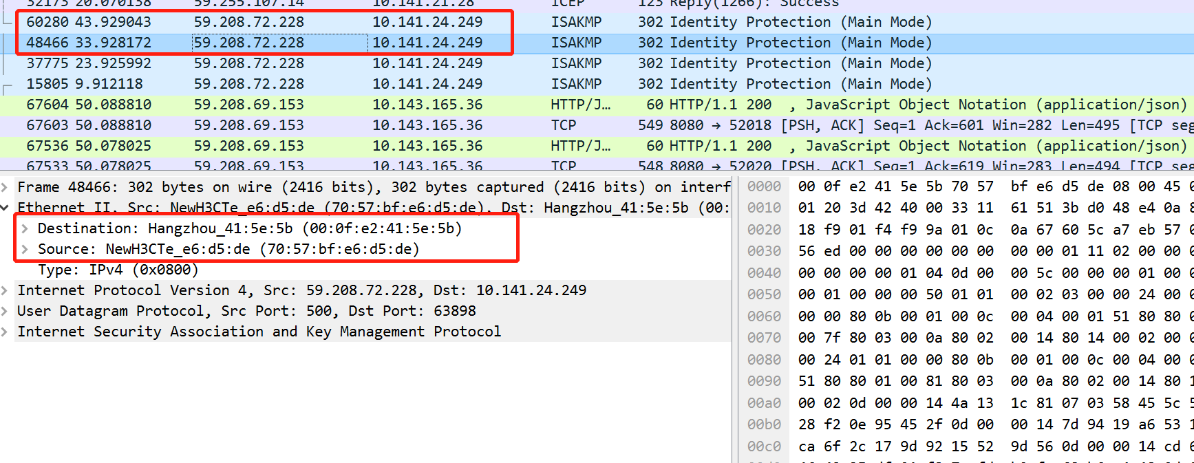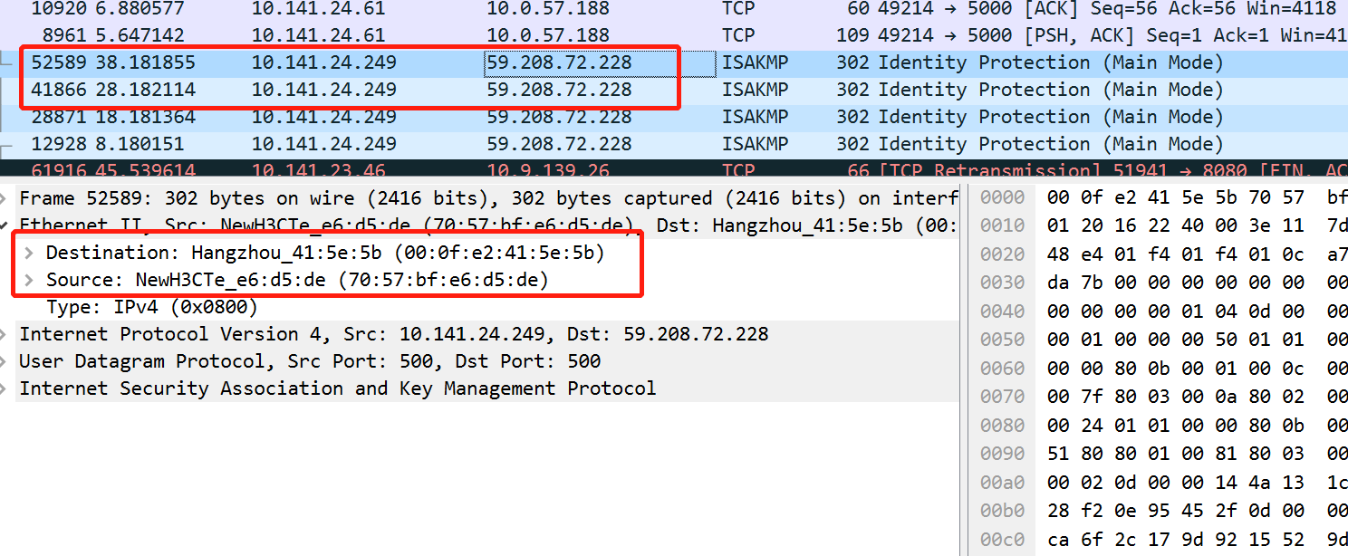 如图所示,这是在SR6608路由器端口上面抓包后得到的信息,数据包源地址和目的地址互换之后,源MAC地址和目的MAC地址没有变化,有大佬知道这是什么问题吗?