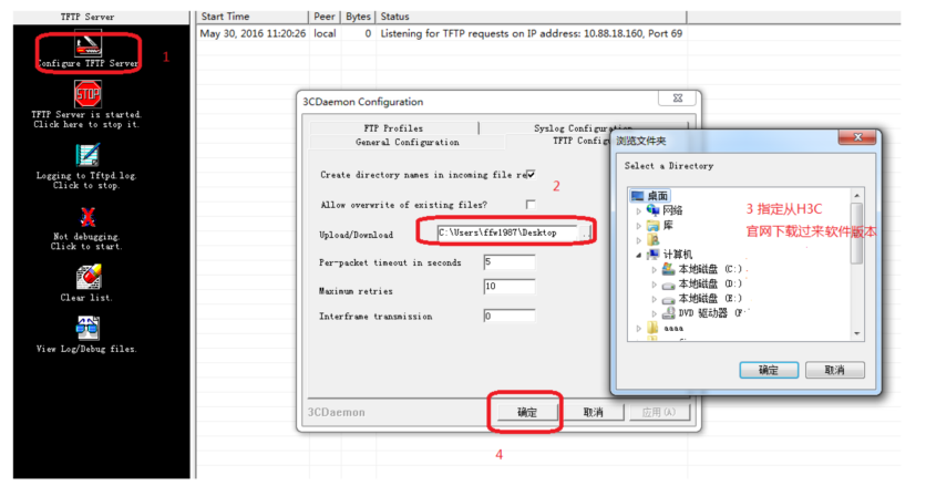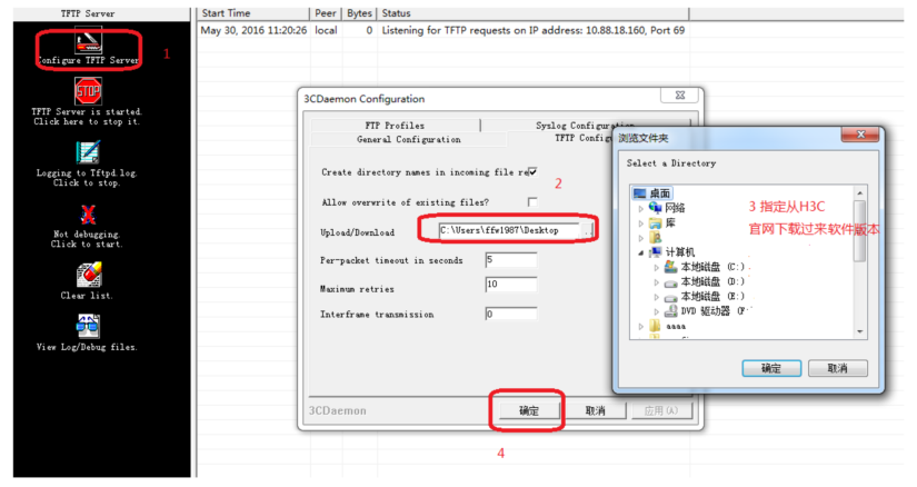 命令行升级需在PC上搭建TFTP Server(推荐用户使用3CDaemon搭建TFTP服务器)