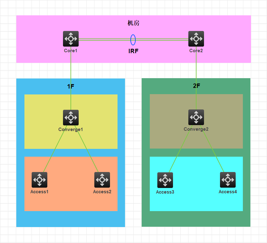 拓扑图是模拟一个楼内的网络架构,后面还有3F/4F其它楼层哈。