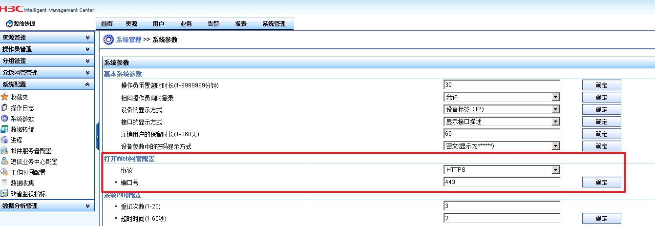 H3C的iMC智能管理中心,需要将web管理由http改为https,在系统配置有看到该选项,但是修改后,无法访问,请问需要怎么配置。