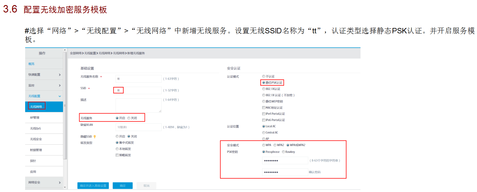 wlan service-template 1 crypto
