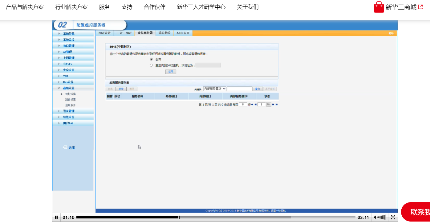 设置当虚拟服务器列表中如果不存在对应的映射项时,对报文的处理方式(主页面。选择“丢弃”或“重定向到DMZ主机”,单击<应用>按钮生效) | |