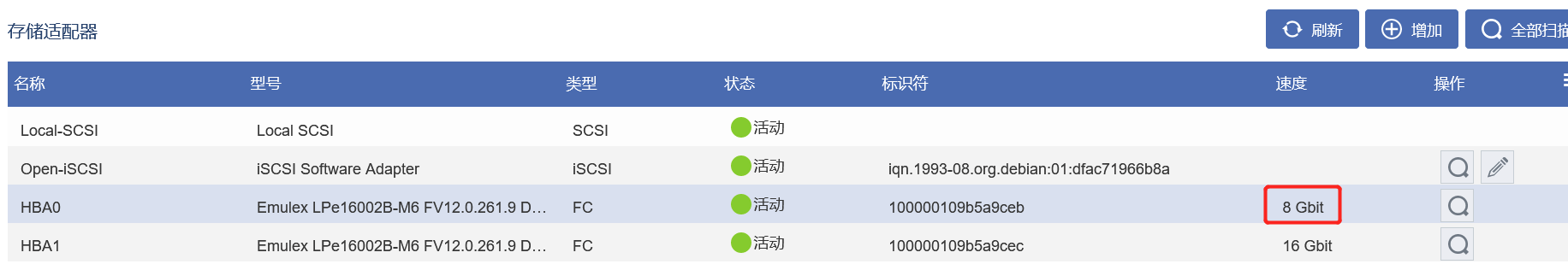 CAS平台中一台主机的HBA卡速率由16G变为了8G,查看改主机的FC路径和存储连接情况都没问题,请问下一步该如何排查?